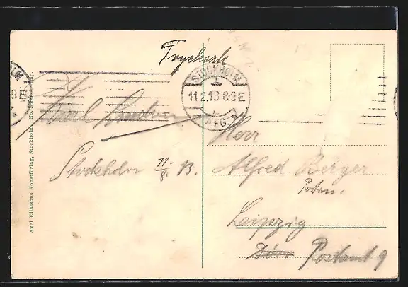 alte Ansichtskarte, gelaufen 1913, Briefmarke entfernt, rückseitig Oberflächenschaden, Stempelspur, guter Zustand