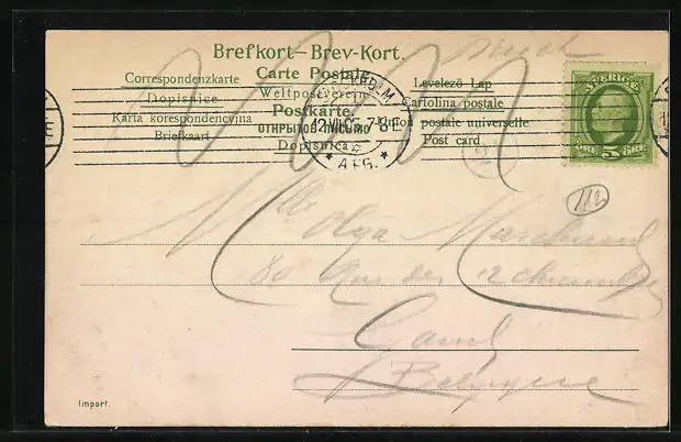 alte Ansichtskarte, gelaufen 1905, Stempelspur, guter Zustand