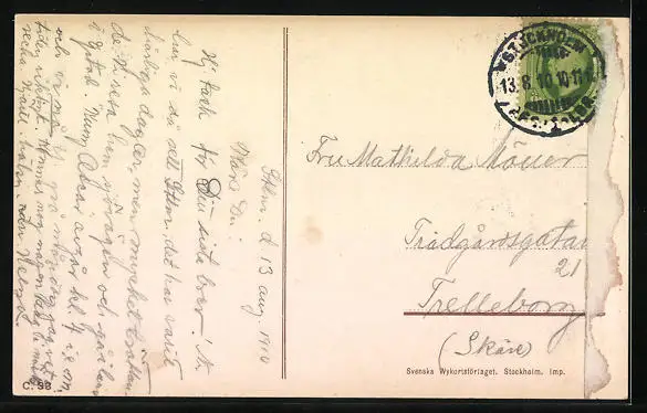 gelaufen 1910, rückseitig Klebe- und Papierreste, guter Zustand