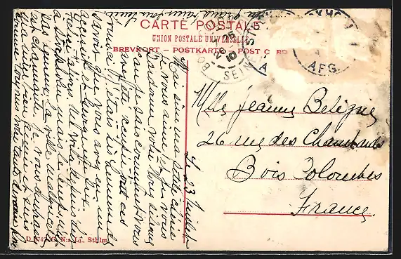 alte Ansichtskarte, gelaufen, Briefmarke entfernt, rückseitig Oberflächenschaden, Eckknicke re., guter Zustand