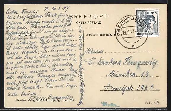 alte Ansichtskarte, gelaufen 1947, guter Zustand