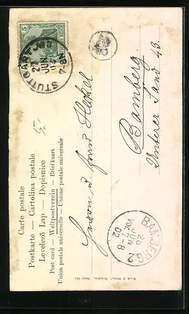 alte Ansichtskarte, gelaufen 1902, guter Zustand