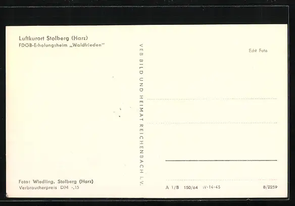 AK Stolberg /Harz, FDGB-Erholungsheim Waldfrieden