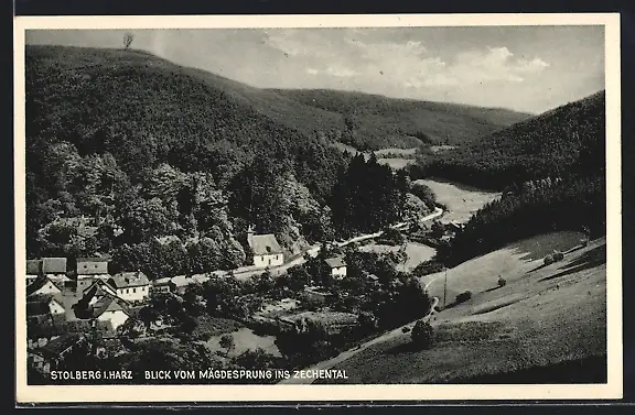 AK Stolberg i. Harz, Blick vom Mägdesprung ins Zechental