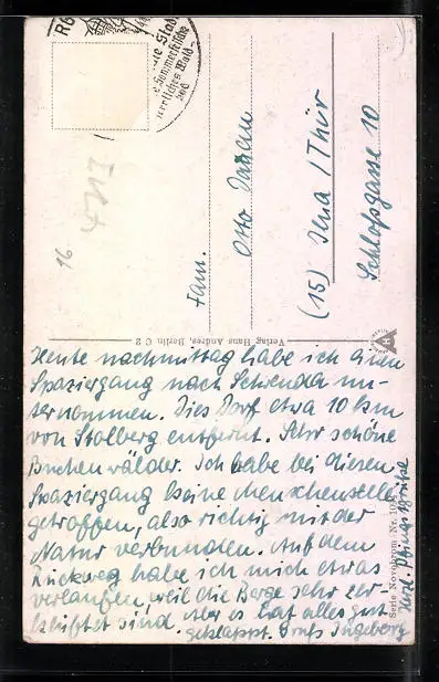 alte Ansichtskarte, gelaufen, Briefmarke entfernt, guter Zustand