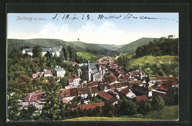 AK Stolberg im Harz, Panorama mit Kirche u. Bergen