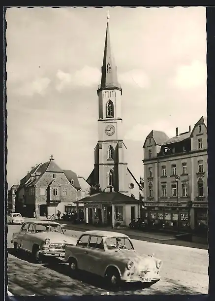 AK Stollberg / Erzgeb., Markt mit Jakobikirche und Trabanten