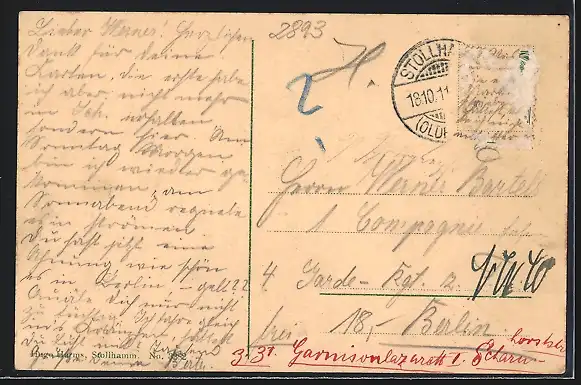 gelaufen 1911, Briefmarke entfernt, guter Zustand
