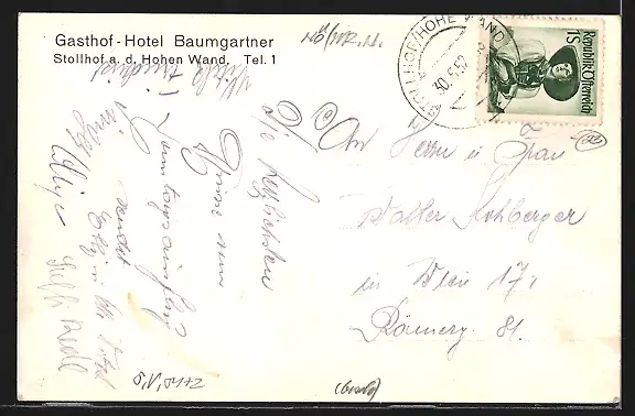 AK Stollhof a. d. Hohen Wand, Gasthof-Hotel Baumgartner