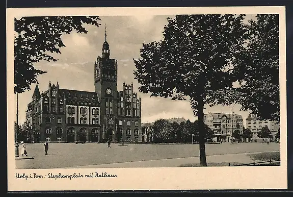 AK Stolp i. Pom., Stephanplatz mit Rathaus