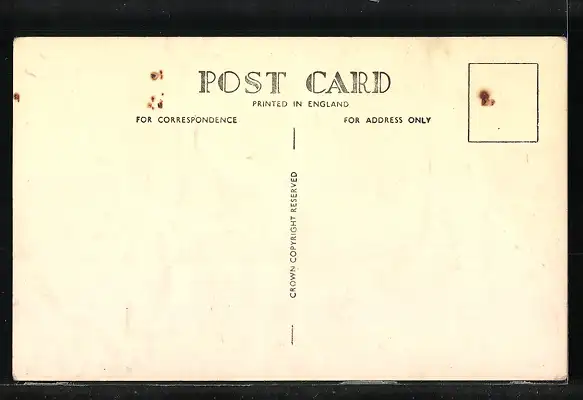 Personenbezogene Daten auf der Rückseite der Karte wurden durch blauen Textmarker unkenntlich gemacht. Die blauen Stellen sind auf die Vorderseite durchgeweicht und wirken sich negativ auf das Postkartenfoto aus