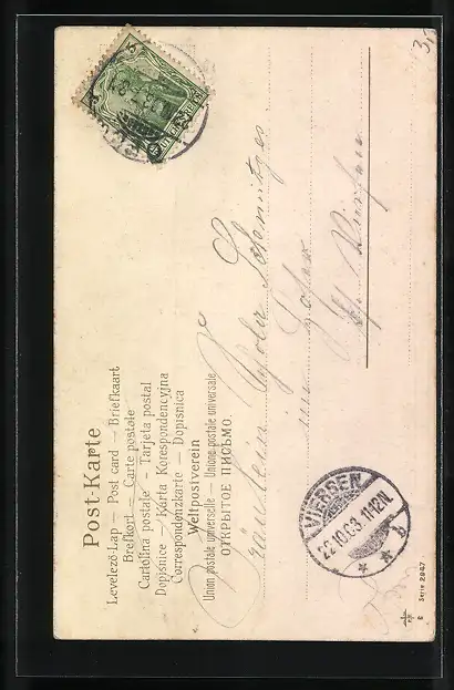 alte Ansichtskarte, gelaufen 1903, Eckknick li. oben, guter Zustand