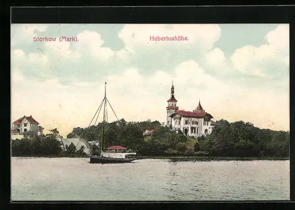 AK Storkow /Mark, Hubertushöhe vom anderen Ufer