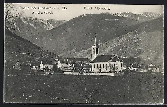 AK Stossweier, vue générale avec l`église et les montagnes au fond