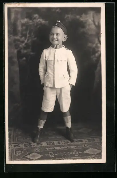 AK Strahlender kleiner Junge in weisser Uniform mit Barett