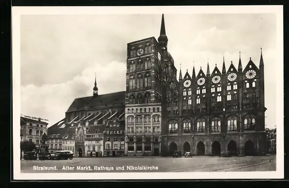 AK Stralsund, Alter Markt, Rathaus und Nikolaikirche