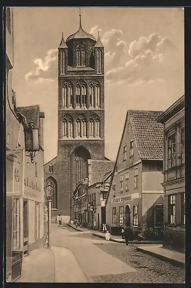 AK Stralsund, Böttcherstrasse mit Jacobikirche