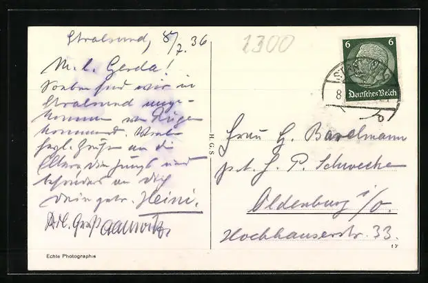 alte Ansichtskarte, gelaufen 1936, Stempelspur, guter Zustand