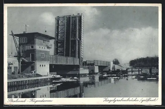 AK Stralsund, Rügendamm, geöffnete Ziegelgrabenbrücke