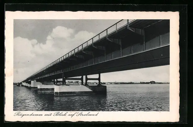 AK Stralsund, Rügendamm mit Blick auf Stralsund