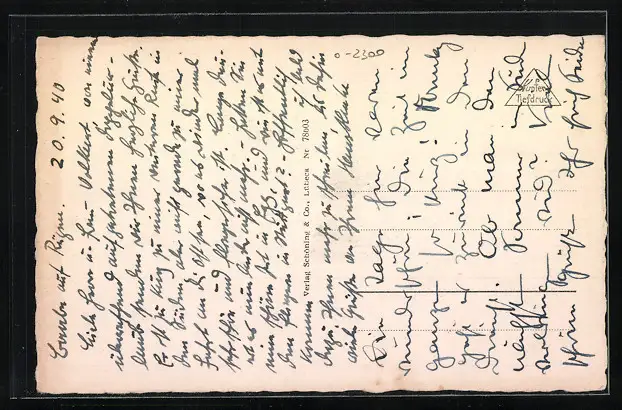 ungelaufen, Rückseite beschrieben 1940, guter Zustand