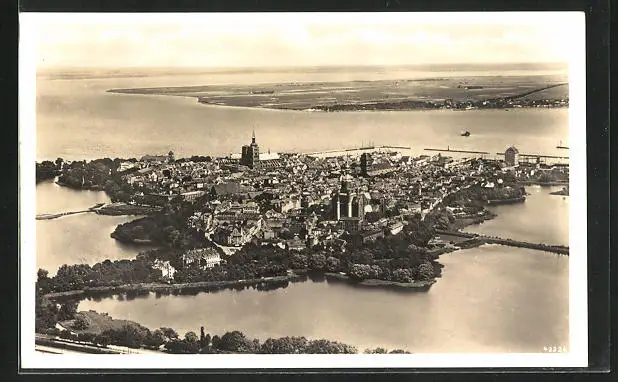 AK Stralsund, Totalansicht vom Flugzeug aus