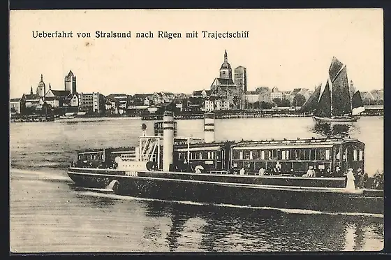 AK Stralsund, Trajectschiff der Verbindung nach Rügen, Segelboot