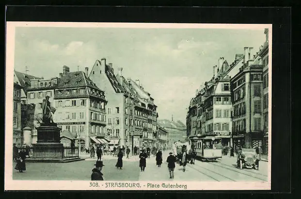 AK Strasbourg, Place Gutenberg, Strassenbahn