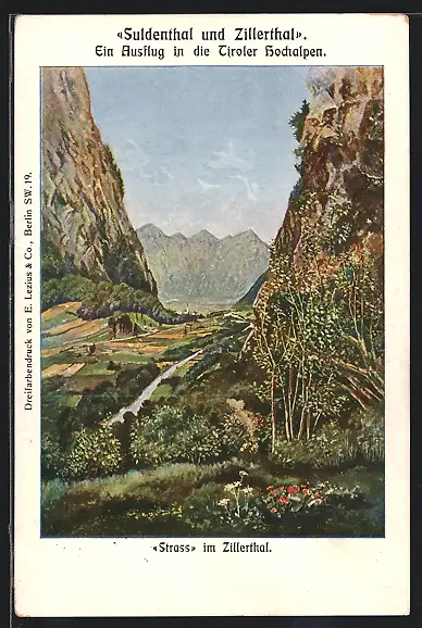 AK Strass im Zillertal, Blick auf Strass mit Gebirgspanorama