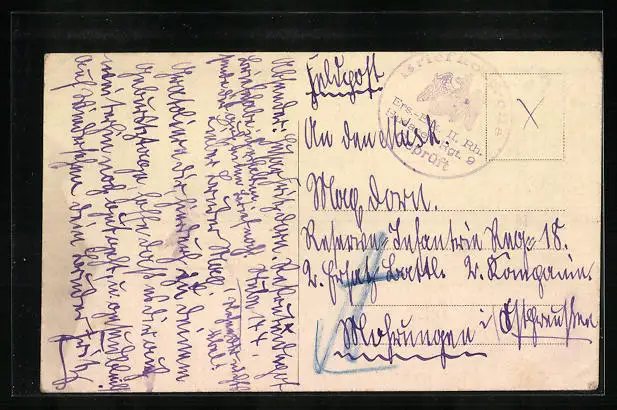 alte Ansichtskarte, gelaufen als Feldpost, vorn Kleberest, guter Zustand