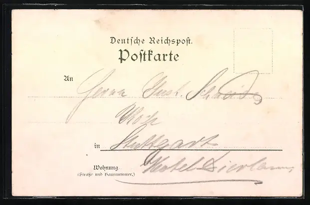 Personenbezogene Daten auf der Rückseite der Karte wurden durch blauen Textmarker unkenntlich gemacht. Die blauen Stellen sind auf die Vorderseite durchgeweicht und wirken sich negativ auf das Postkartenfoto aus