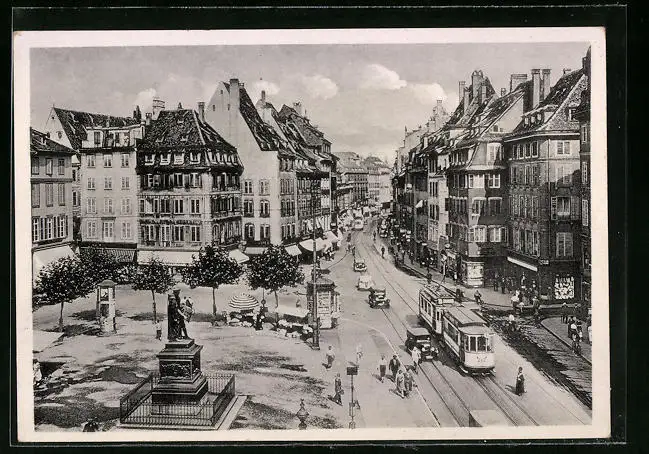 AK Strassburg, Gutenberg-Platz mit Strassenbahn