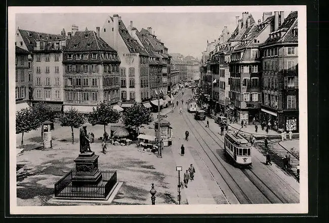 AK Strassburg, Gutenbergplatz, Strassenbahn
