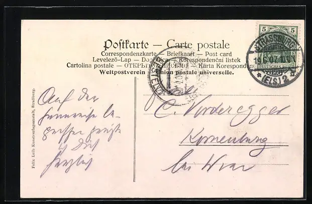 alte Ansichtskarte, gelaufen 1907, Stempelspur, guter Zustand