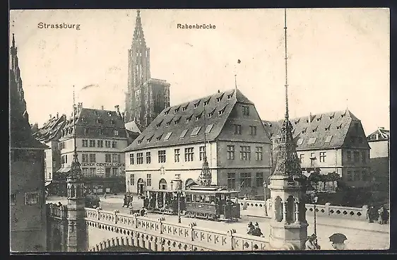 AK Strassburg, Rabenbrücke mit Strassenbahn