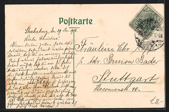 alte Ansichtskarte, gelaufen 1908, Stempelspur, guter Zustand