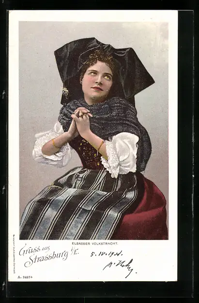 AK Strassburg, Schönheit in Elsässer Volkstracht