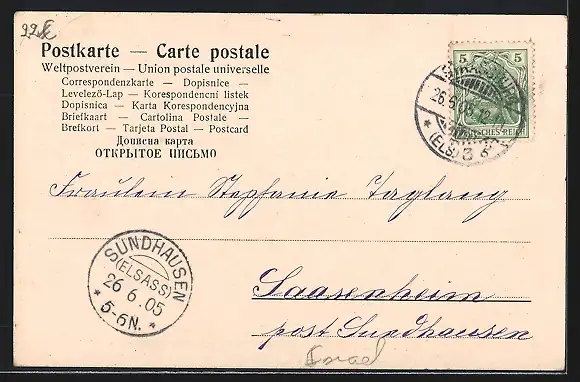 alte Ansichtskarte, gelaufen 1905, Stempelspur, guter Zustand