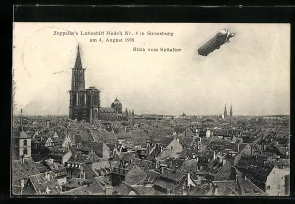 AK Strassburg, Zeppelin`s Luftschiff Modell Nr. 4 1908, Blick vom Spitaltor