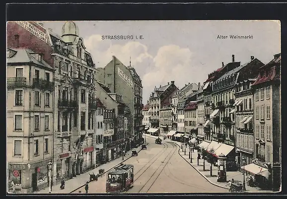 AK Strassburg i. E., Alter Weinmarkt mit Strassenbahn
