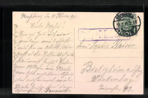 gelaufen 1915, Stempelspur, guter Zustand