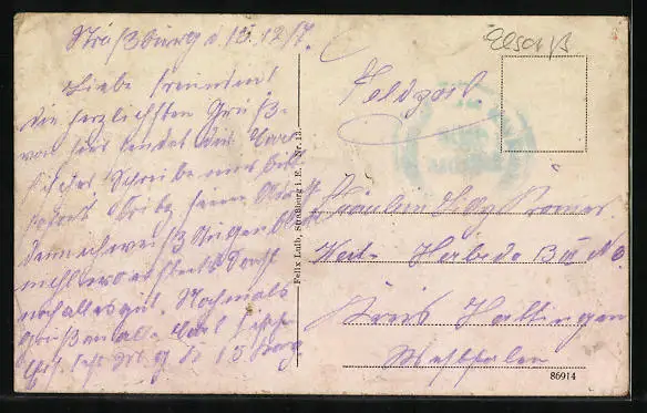 alte Ansichtskarte, gelaufen als Feldpost, Bugspuren mittig und unten links, Eckknick unten rechts, guter Zustand