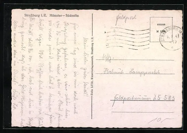 gelaufen 1943, Eckknicke links u. rechts, guter Zustand