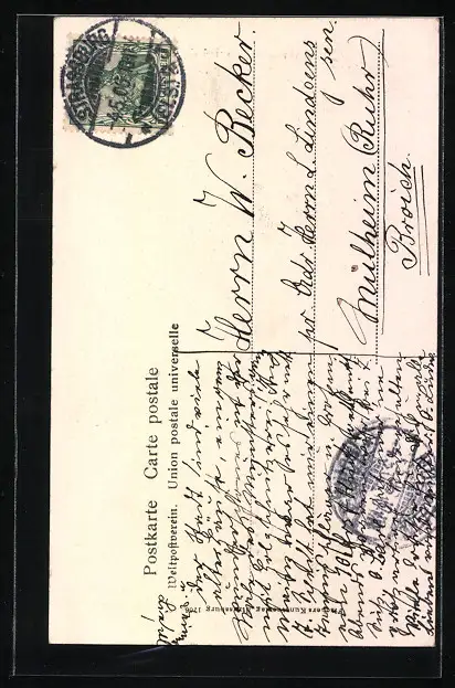 alte Ansichtskarte, gelaufen 1906, Eckknick oben li., Stempelspur, guter Zustand
