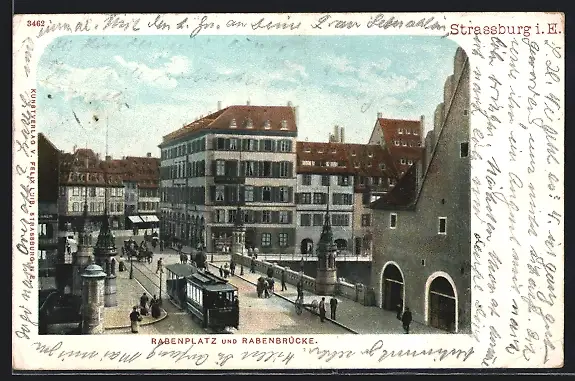 AK Strassburg i. E., Rabenplatz und Rabenbrücke mit Strassenbahn