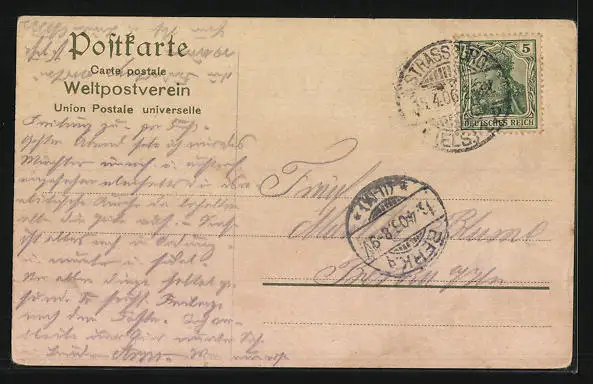 alte Ansichtskarte, gelaufen 1906, Eckknick li. oben, guter Zustand