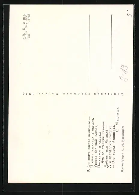 Personenbezogene Daten auf der Rückseite der Karte wurden durch blauen Textmarker unkenntlich gemacht. Die blauen Stellen sind auf die Vorderseite durchgeweicht und wirken sich negativ auf das Postkartenfoto aus
