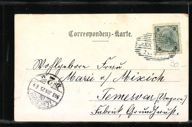 gelaufen 1903, Eckknick re. oben, kl. Einriss re. unten, guter Zustand