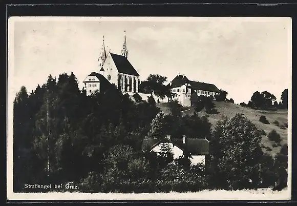 AK Strassengel bei Graz, Ortspartie mit Kirche