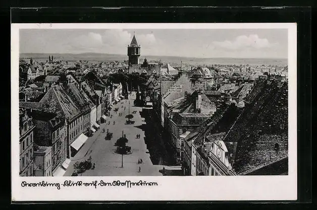 AK Straubing, Blick über den Theresienplatz auf den Wasserturm